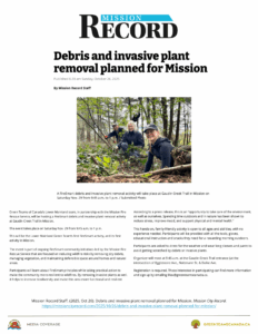 Mission Record Staff. (2025, Oct 26). Debris and invasive plant removal planned for Mission. Mission City Record. https://missioncityrecord.com/2025/10/26/debris-and-invasive-plant-removal-planned-for-mission/