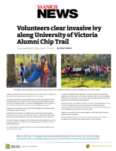 Nikhil, N. (2026, Mar 13). Volunteers clear invasive ivy along University of Victoria Alumni Chip Trail. Saanich News. https://saanichnews.com/2026/03/13/volunteers-clear-invasive-ivy-along-university-of-victoria-alumni-chip-trail/