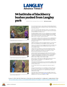 Hooper, R. (2026, Feb 28). 94 bathtubs of blackberry bushes yanked from Langley park. Langley Advance Times. https://langleyadvancetimes.com/2026/02/28/94-bathtubs-of-blackberry-bushes-yanked-from-langley-park/