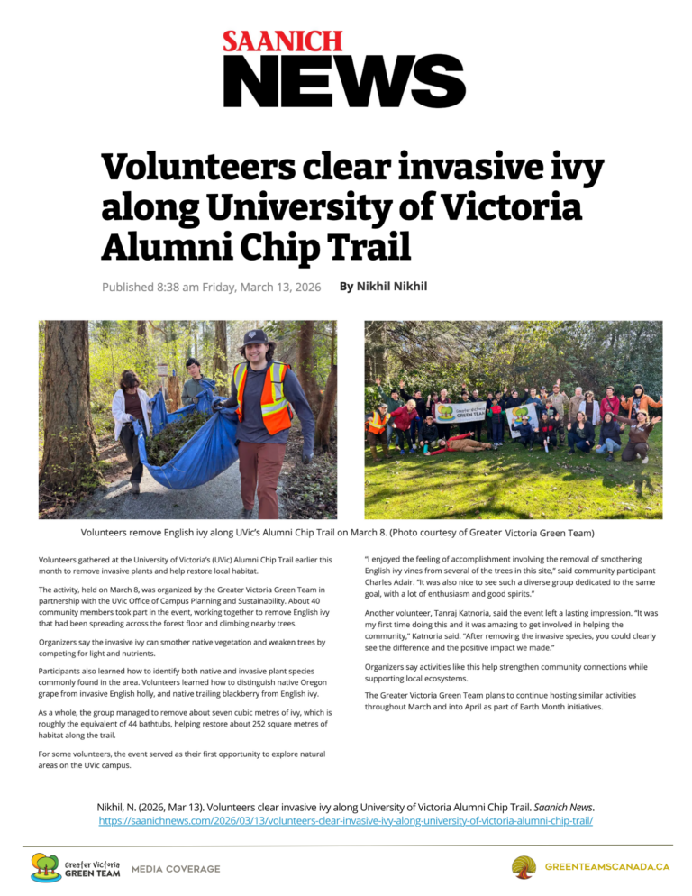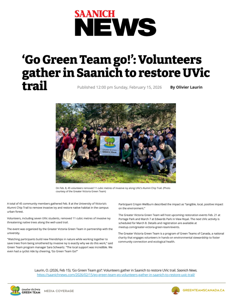 ‘Go Green Team go!’: Volunteers gather in Saanich to restore UVic trail – Saanich News February 15, 2026
