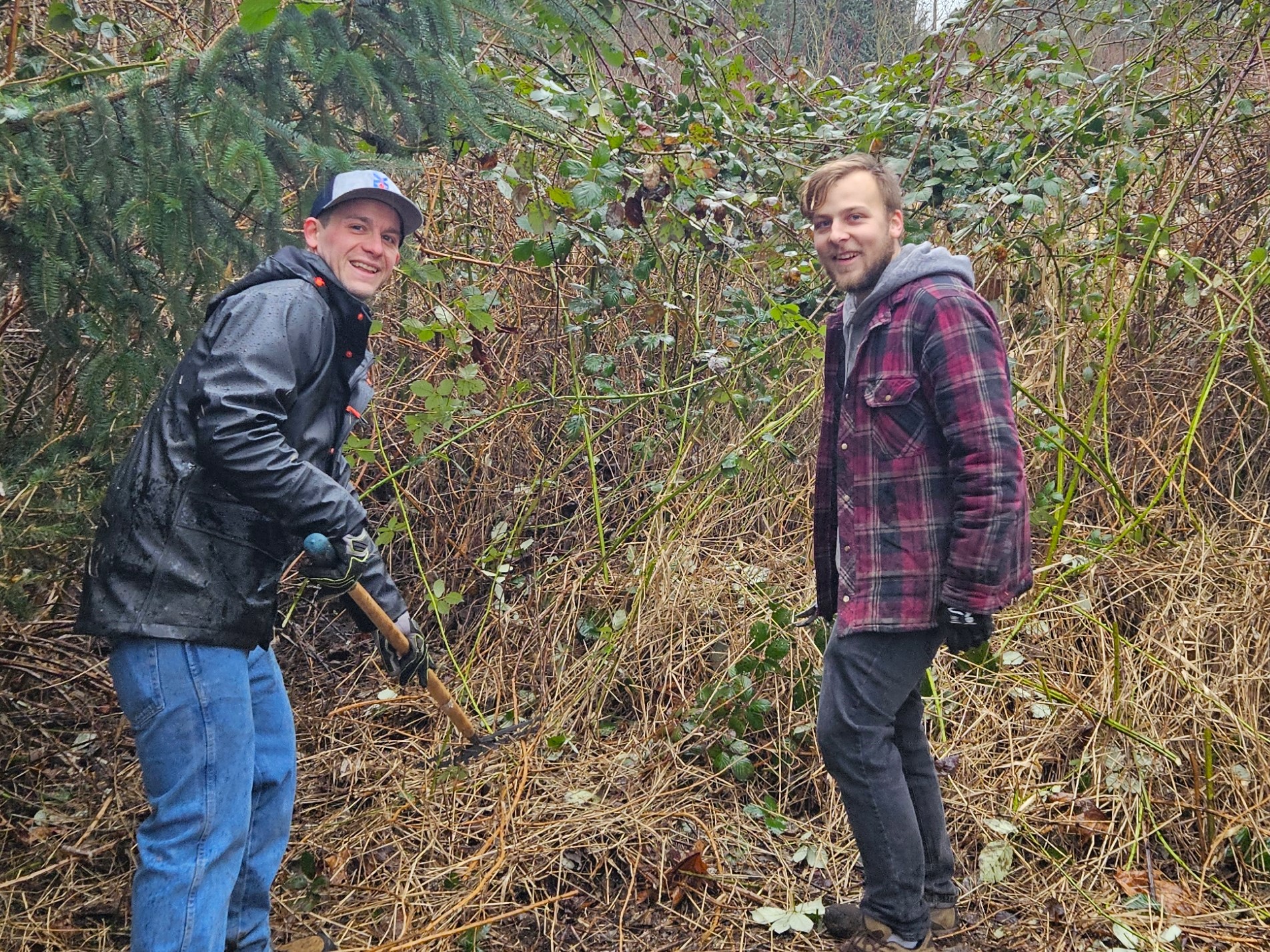 We had a great time in the rain removing Himalayan Blackberry to help protect the Derek Doubleday Arboretum!