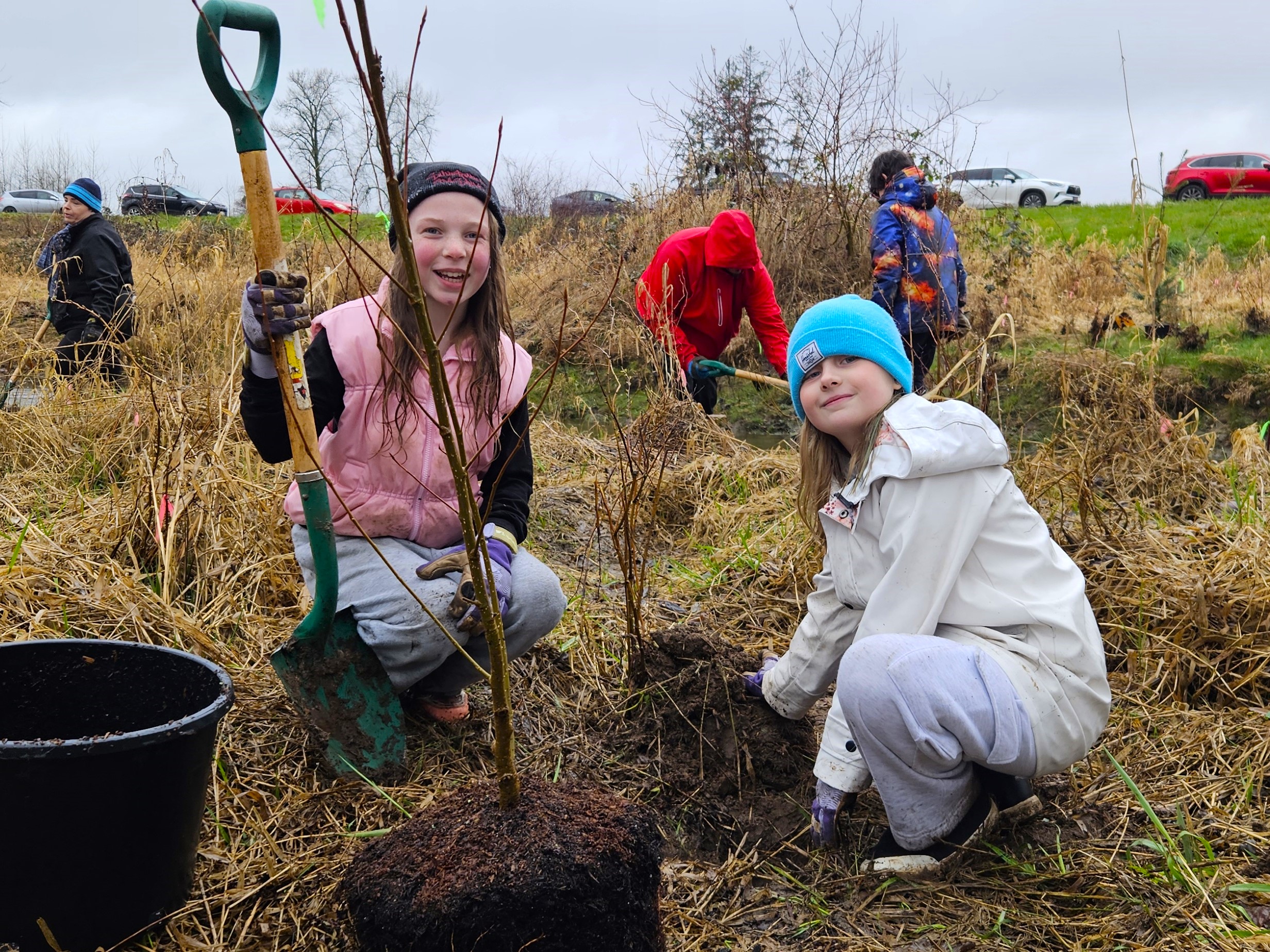 - 221 native shrubs were planted, including Hardhack, Sitka Willow, Black Cottonwood, Western Red Cedar, Douglas Fir, Salmonberry, Red Osier Dogwood, Scouring Rush, Skunk Cabbage, Dense Sedge & Slough Sedge!