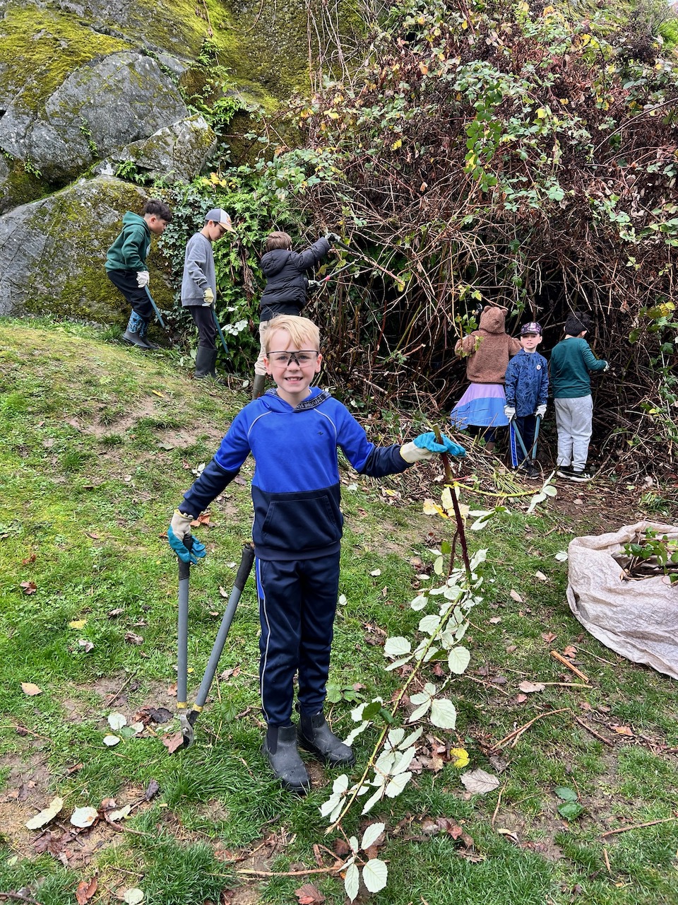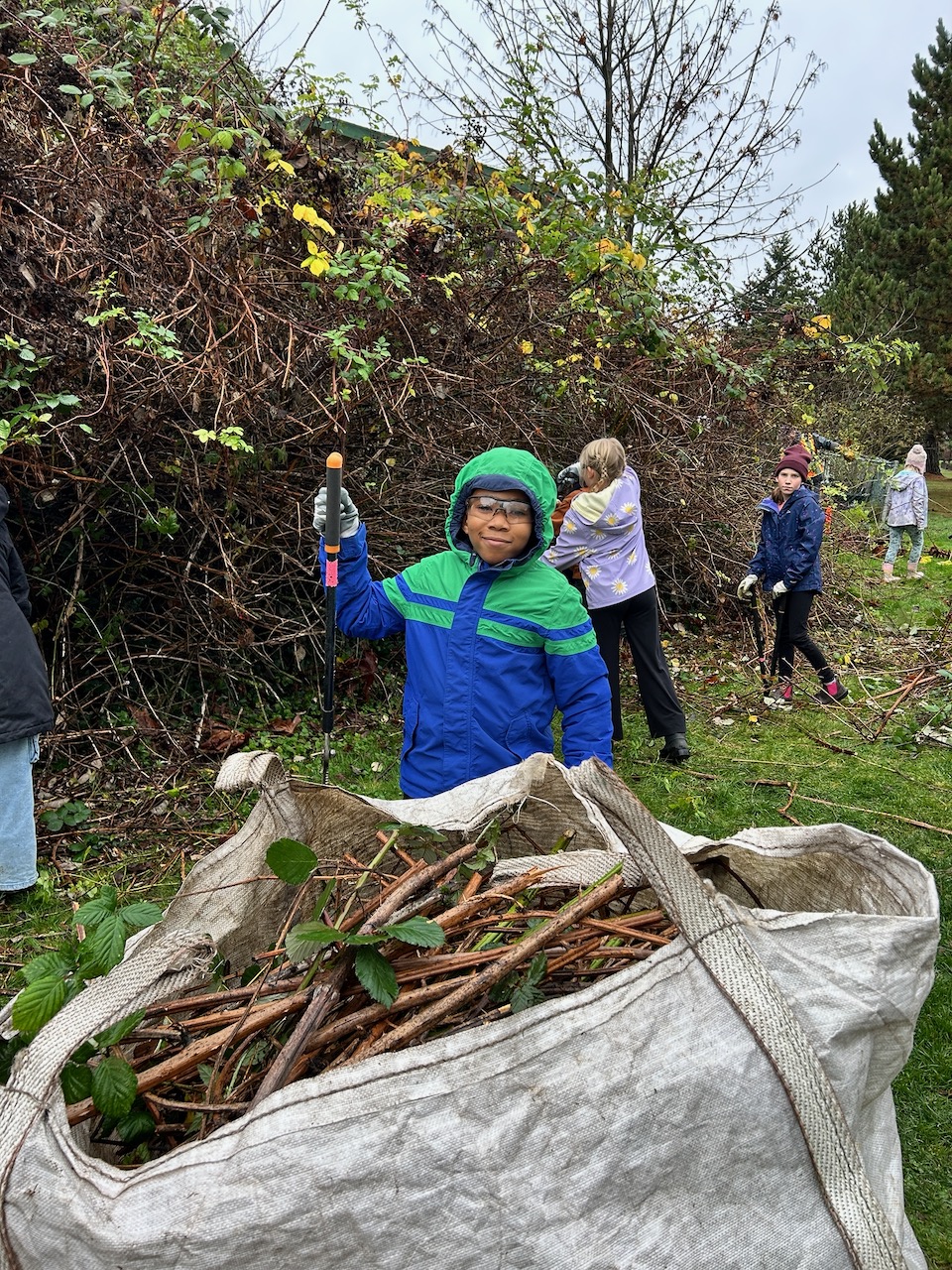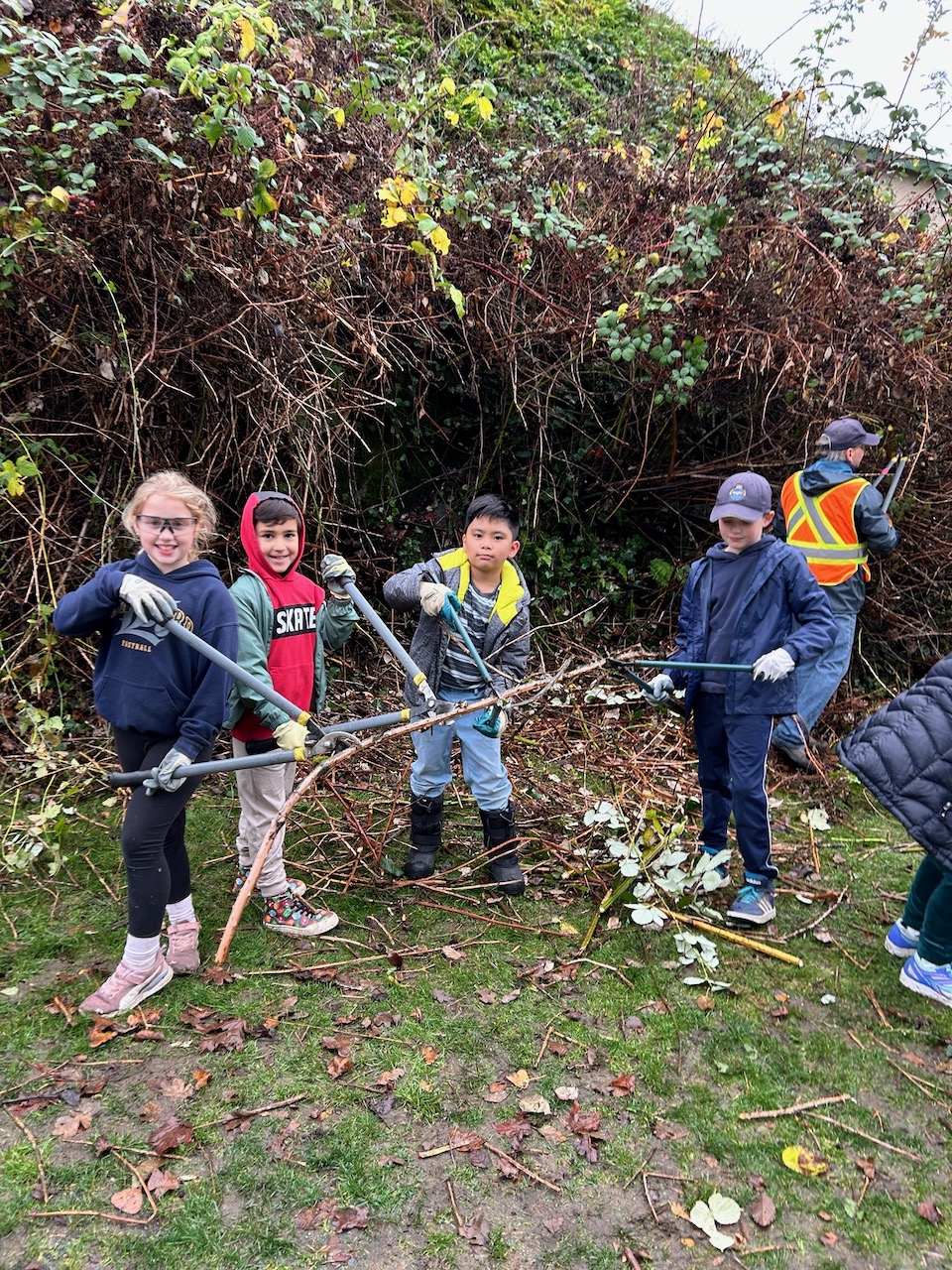 - Students worked in teams to dig out invasive Himalayan blackberry roots