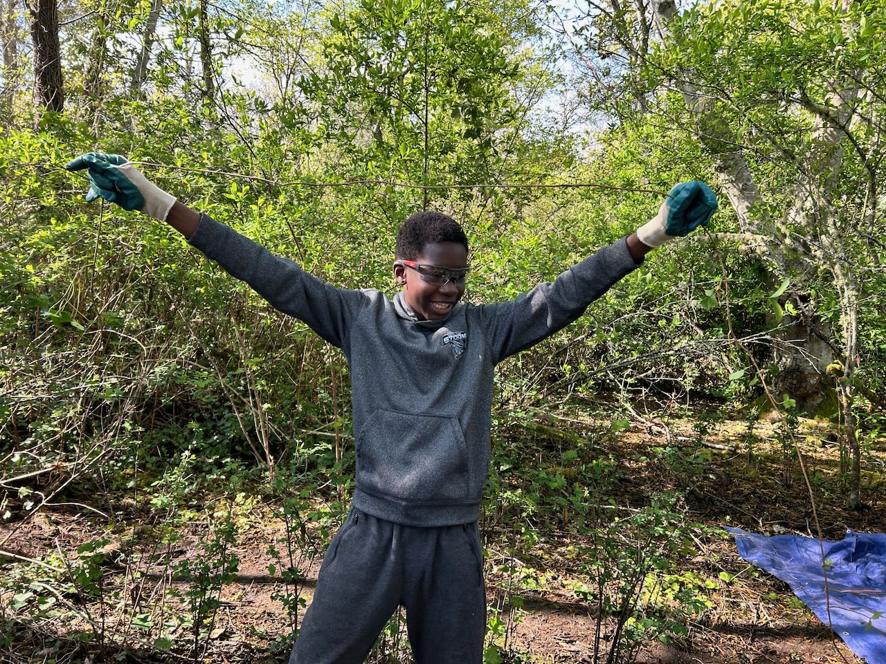 - Students had a friendly competition to see who could pull the longest ivy vine. Congratulations to George and Hunter for winning the challenge!